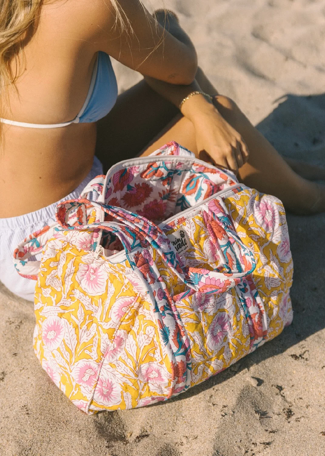 The perfect addition for your weekend away. Hand quilting detail, with contrast print.