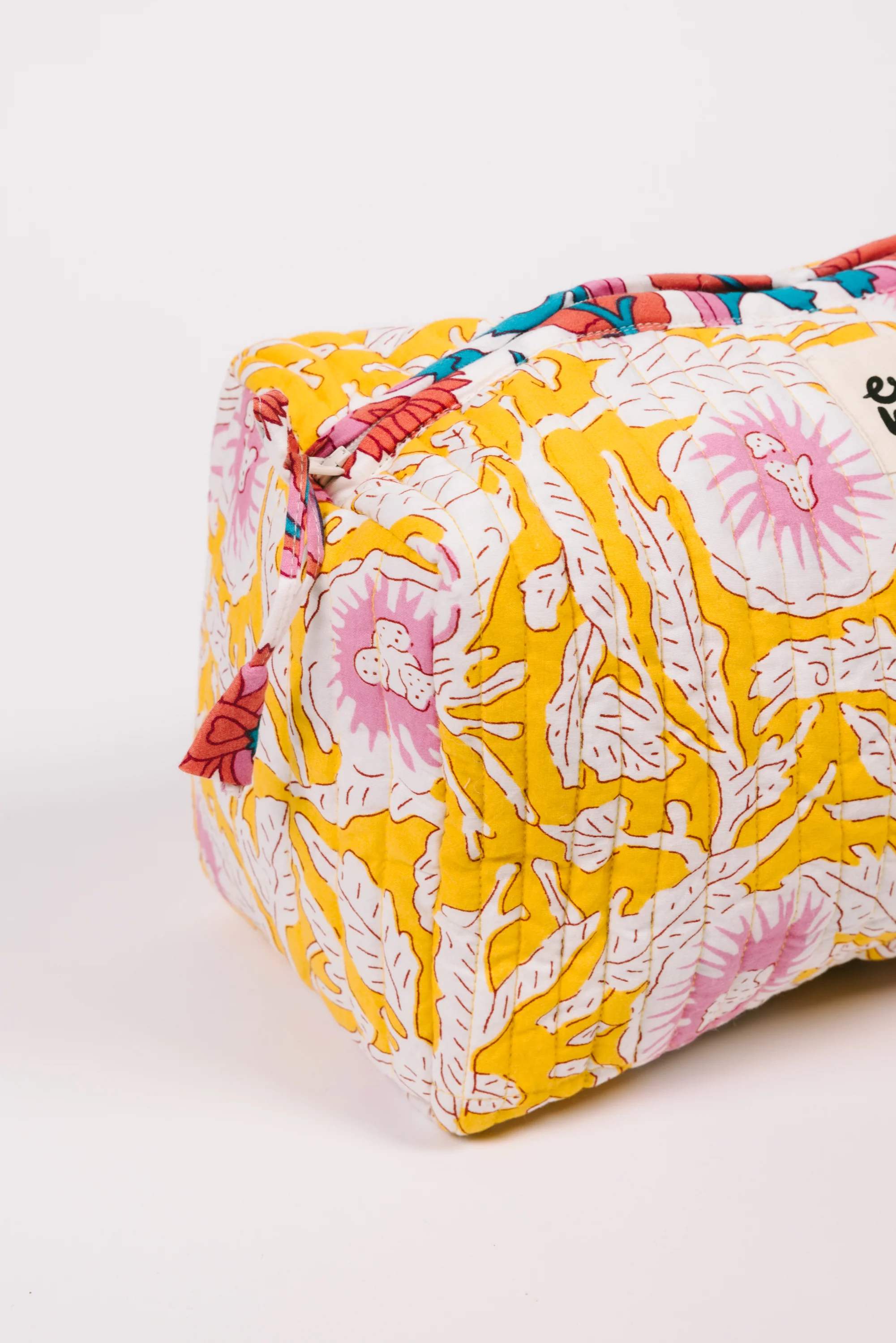 Pouch is soft and compact, in our signature Calla print, with interior fabric lining and four pockets. Zip closure at top.