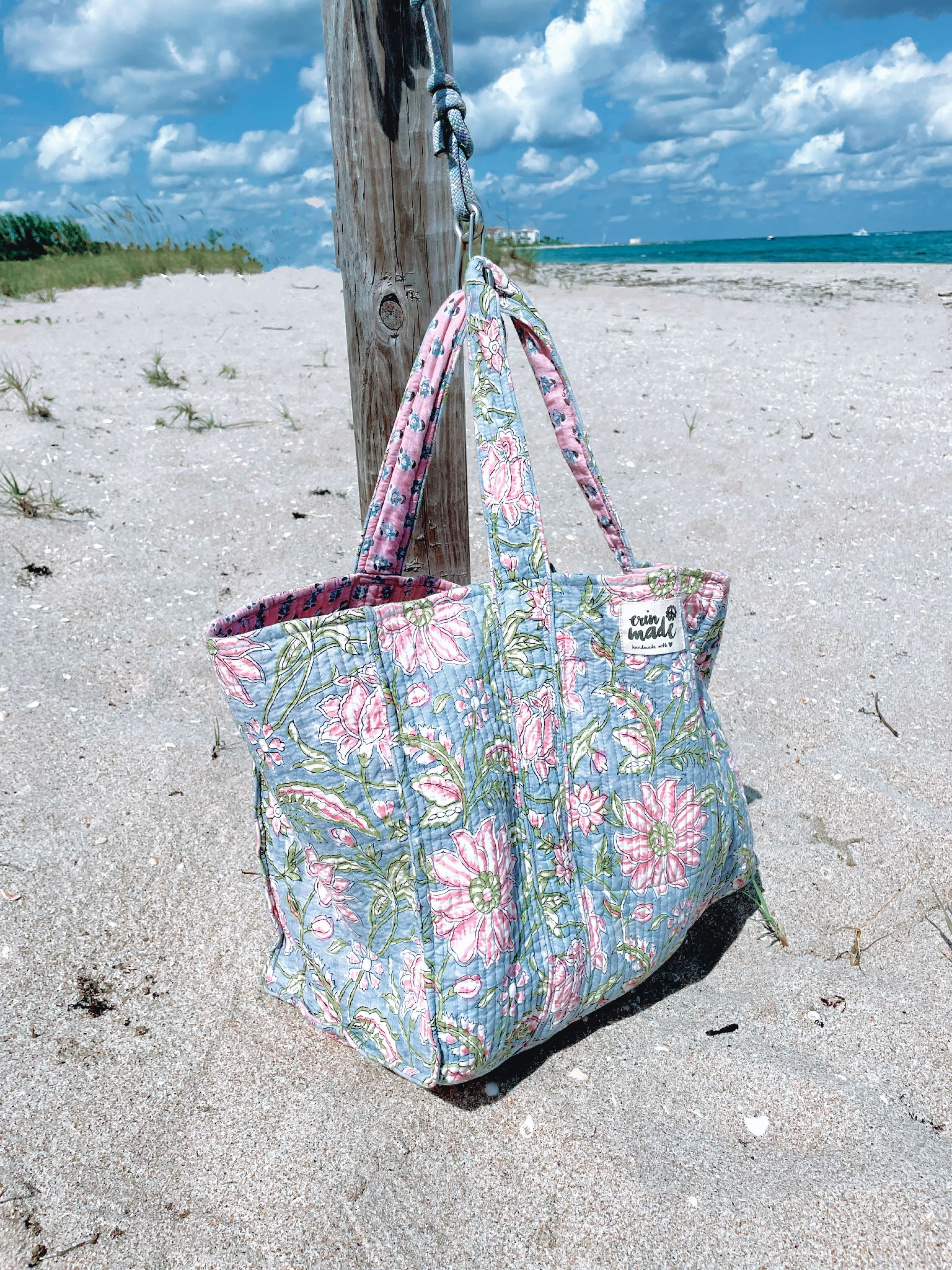 Structured, Over-Sized, Reversible Tote. Perfect for the farmers market, Target run, library score, weekend getaway, or day at the beach! Soft, but sturdy, the Erin Made quilted fabric adds heft to handle life's bigger carries.