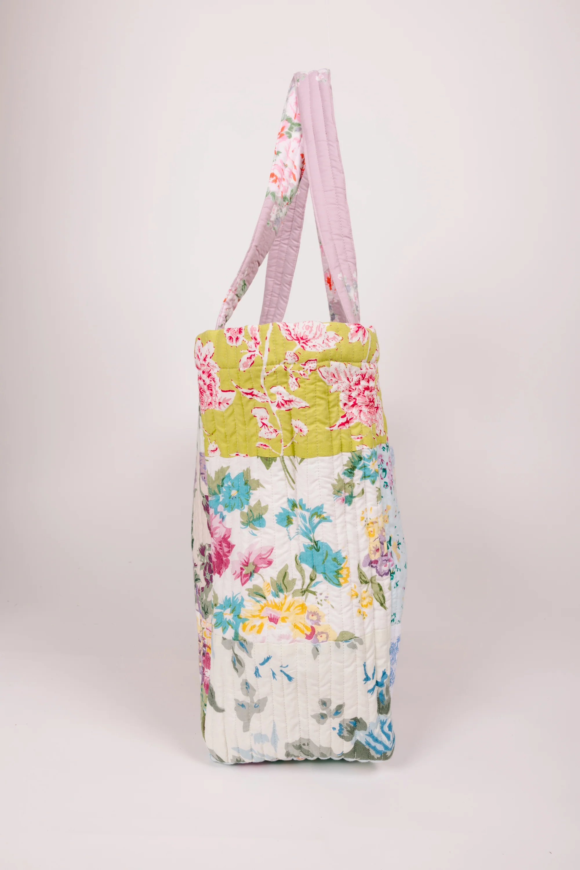 Playful mix of vintage floral pieces & patterns. It's quilted, soft and structured, with an interior zipper pocket to hold your phone, wallet and keys.