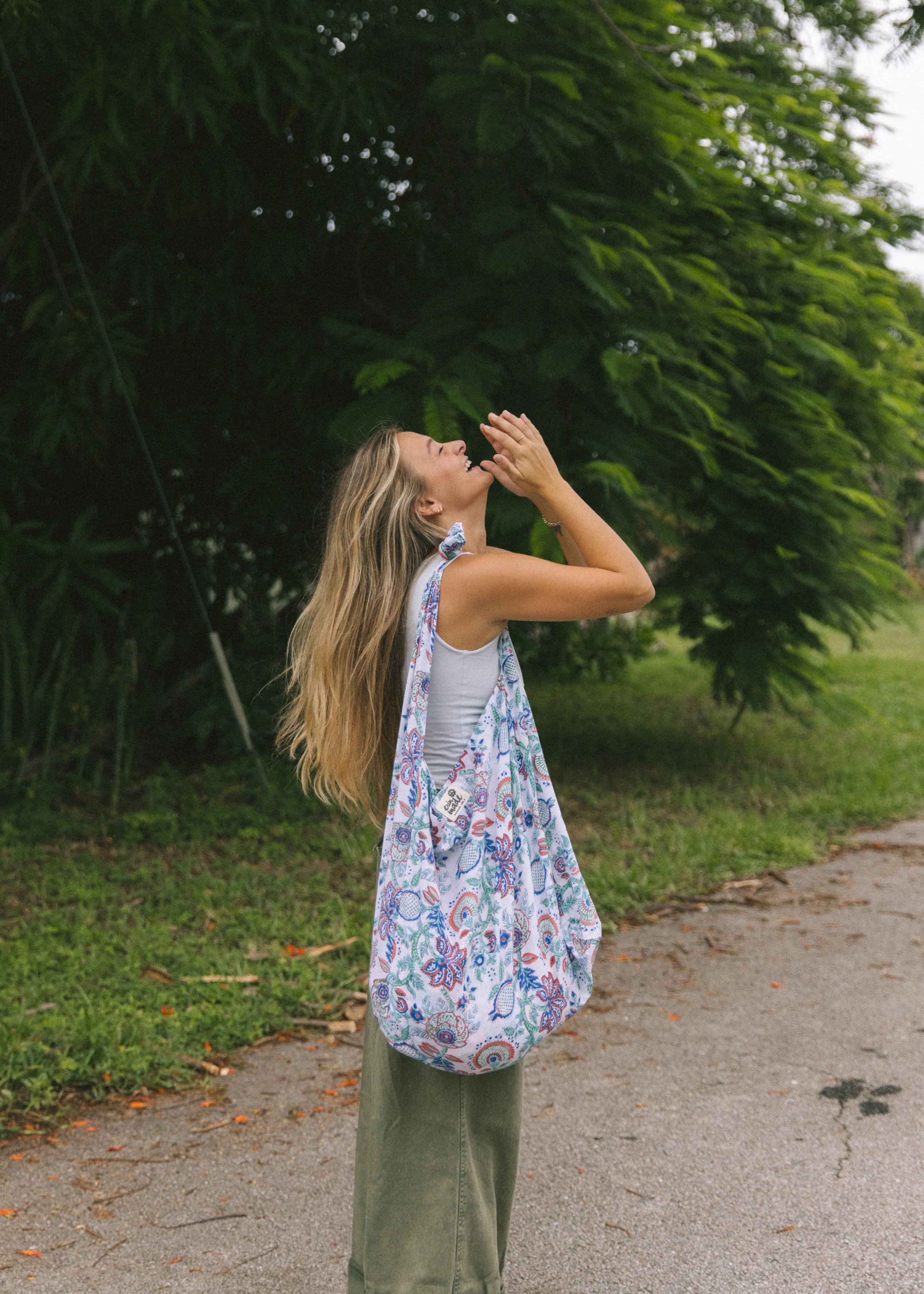 Shoulder or cross-body unlined carryall, packs up light essentials in style. A perfect easy, breezy bag made out of hand block printed cotton fabric.